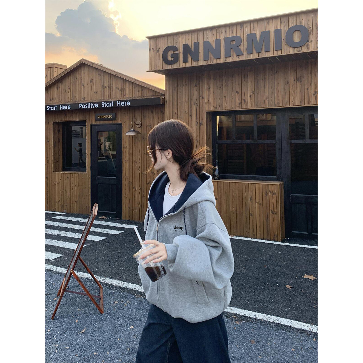 JEEP gray cardigan sweatshirt women's 2026 new spring design niche Korean early spring sports hooded jacket