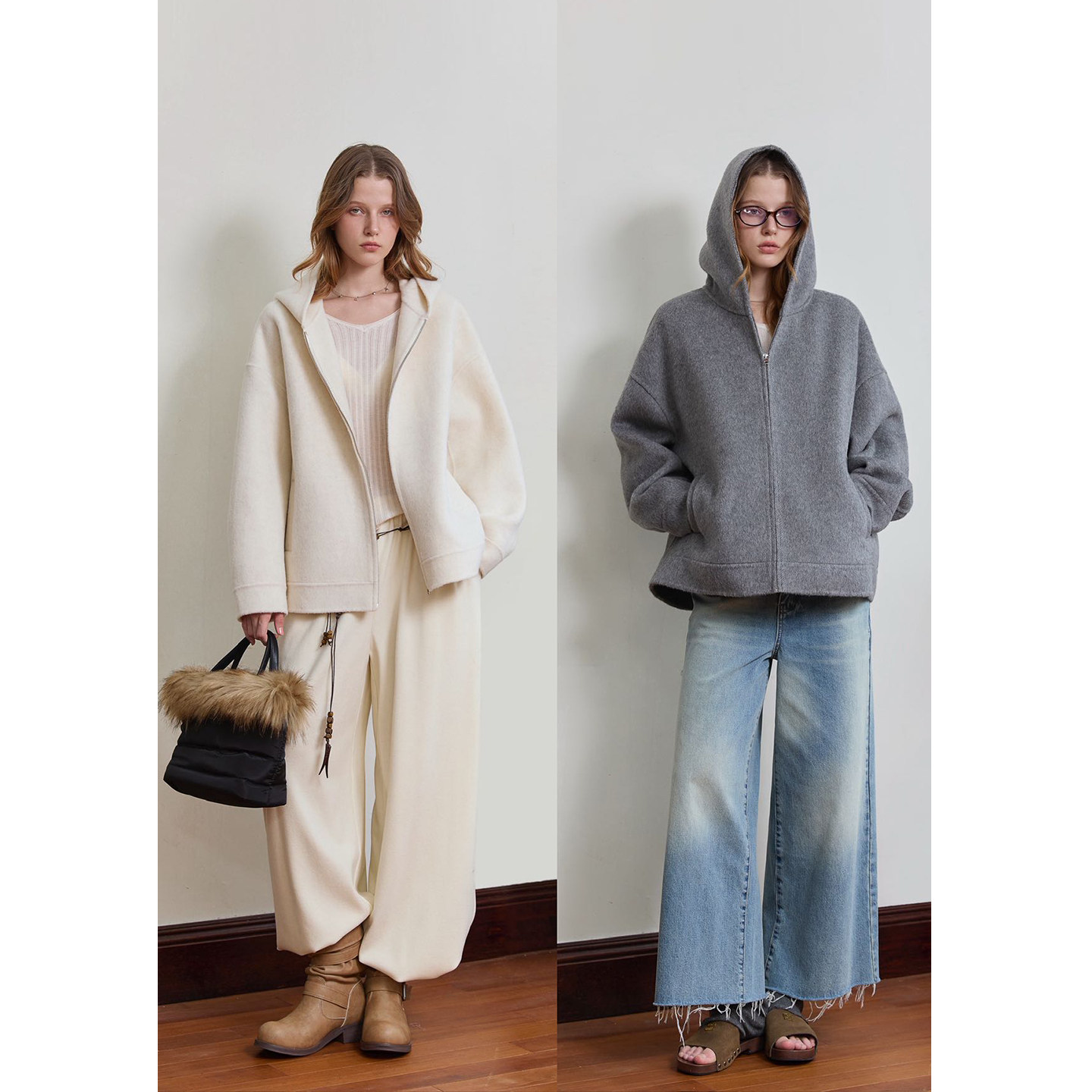 5Werkwen minimalist The R*W plush hooded wool oversized silhouette double-version reversible dweed coat coat