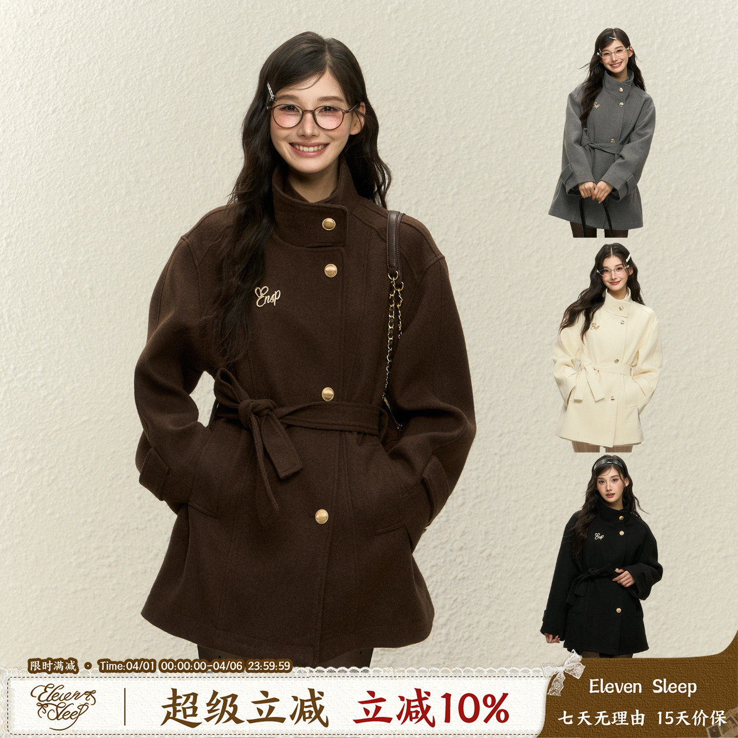 (Off-season clearance) autumn and winter waist woolen jacket women's mid-length straight shoulder temperament stand-up collar woolen coat