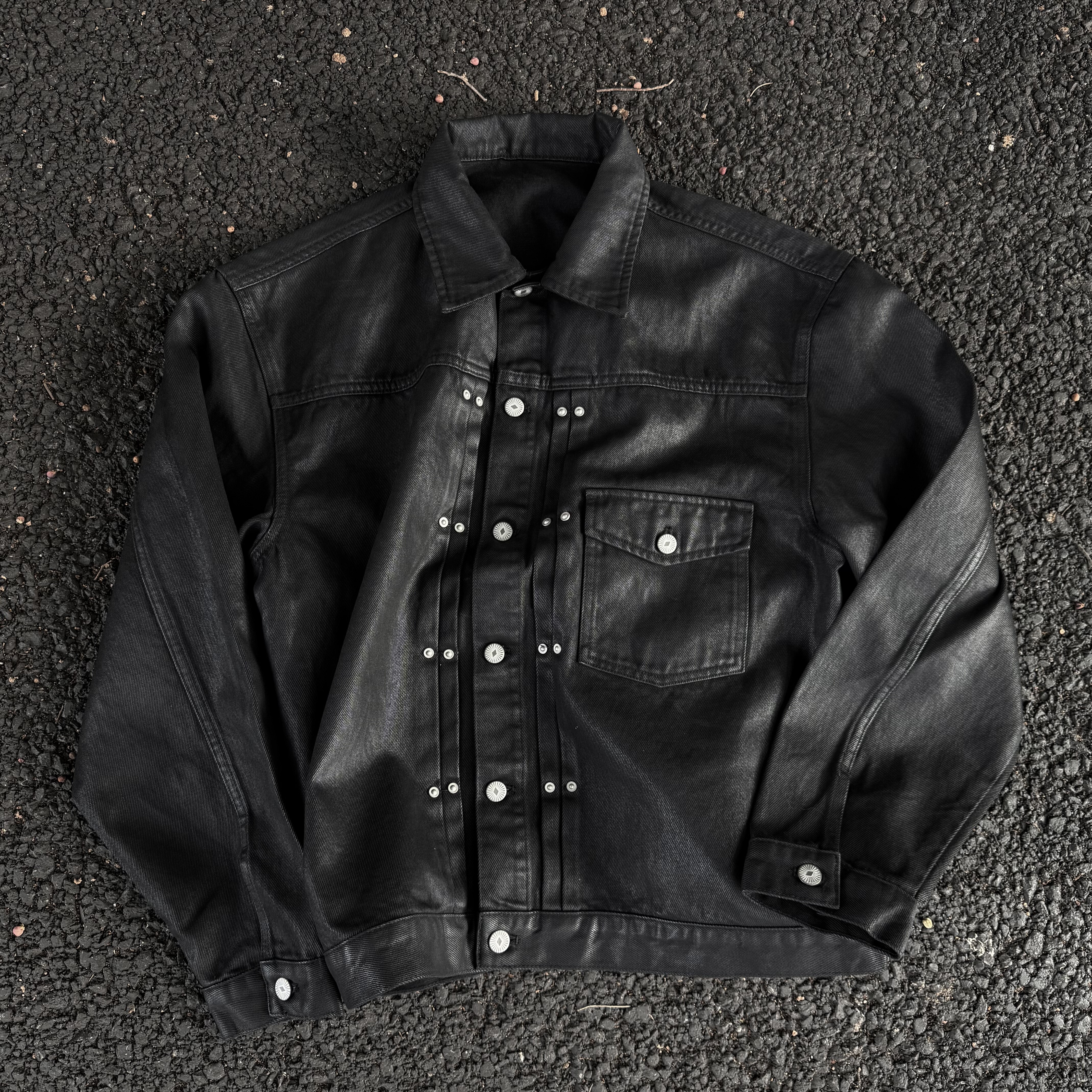 VOWPROGRESS Vinyl Brush Wax Coated Organ Pleated Denim Jacket Jacket / Coron Fabric / Type2 Upgrade