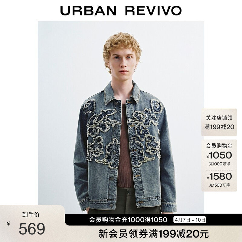 UR2026 Spring New Men's Retro Casual Three-Dimensional Flower Pattern Denim Jacket UMF850068