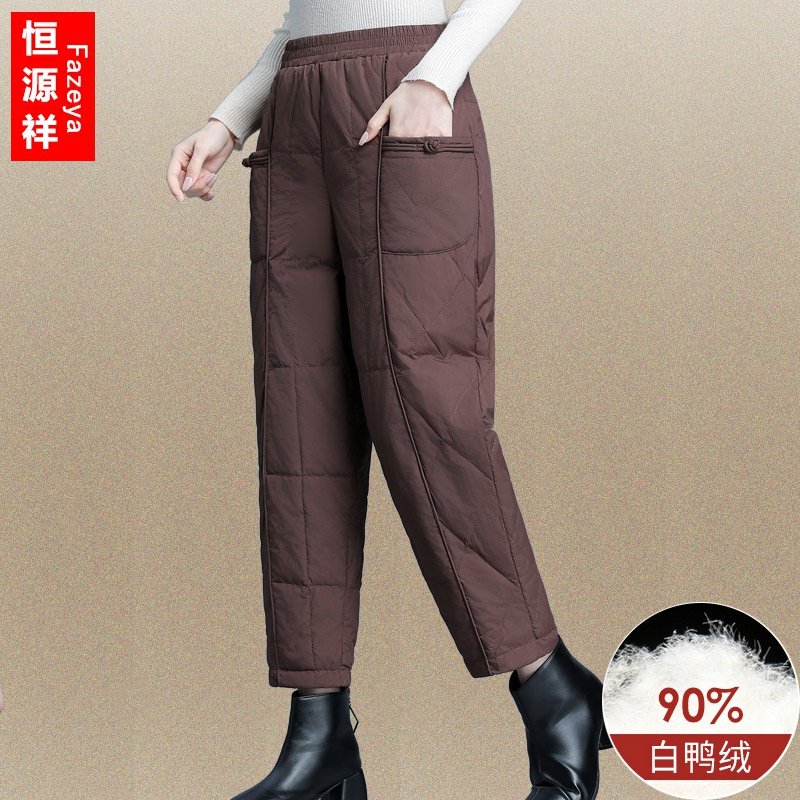 Hengyuan Xiangcai Sheep Down Pants Women's Winter Middle-aged and Elderly Mothers Warm and Thickened High-Waisted Elastic Straight Loose Loose Slacks