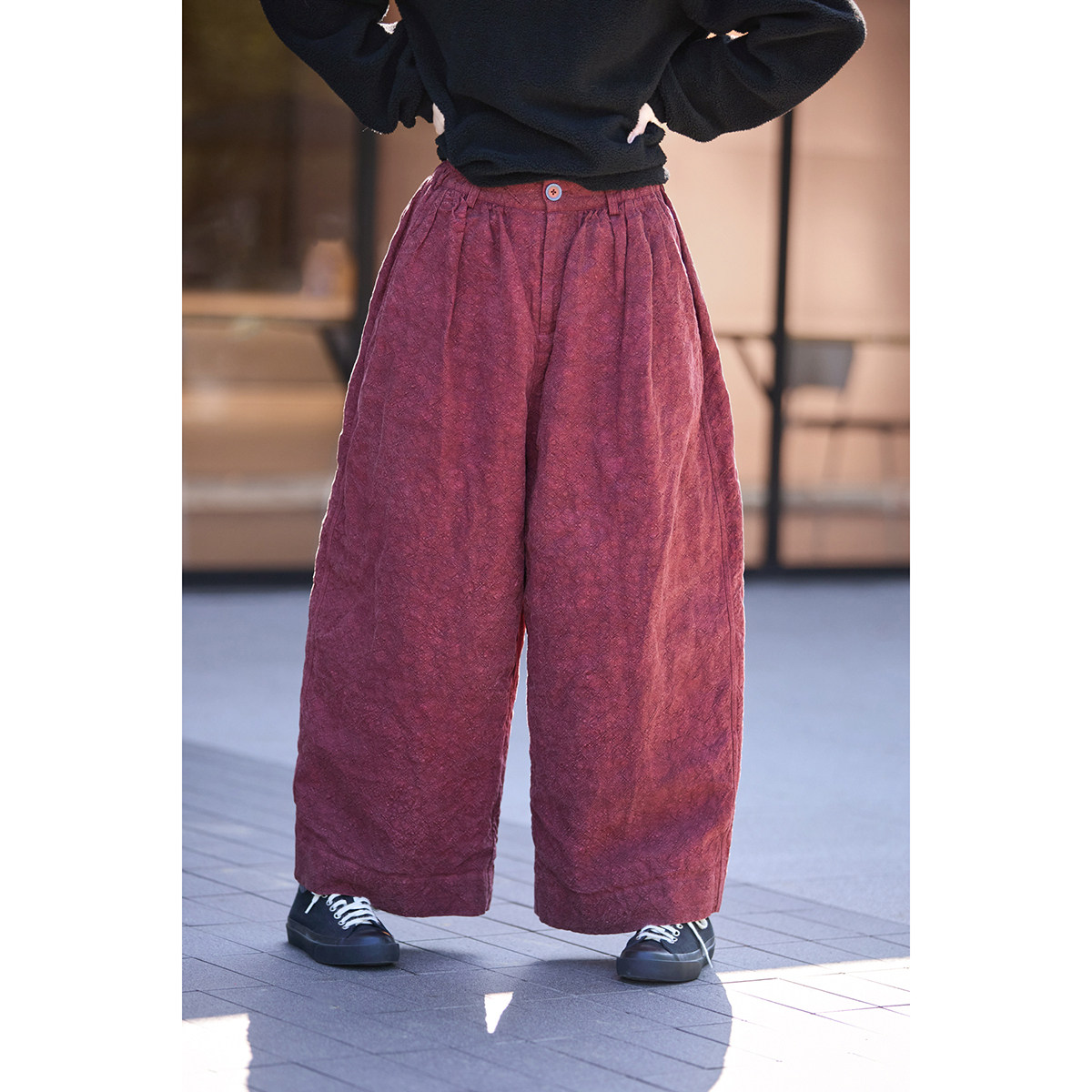 An old original [folk art] winter burgundy high-density linen warm and slim elastic waist cotton pants 7330-4