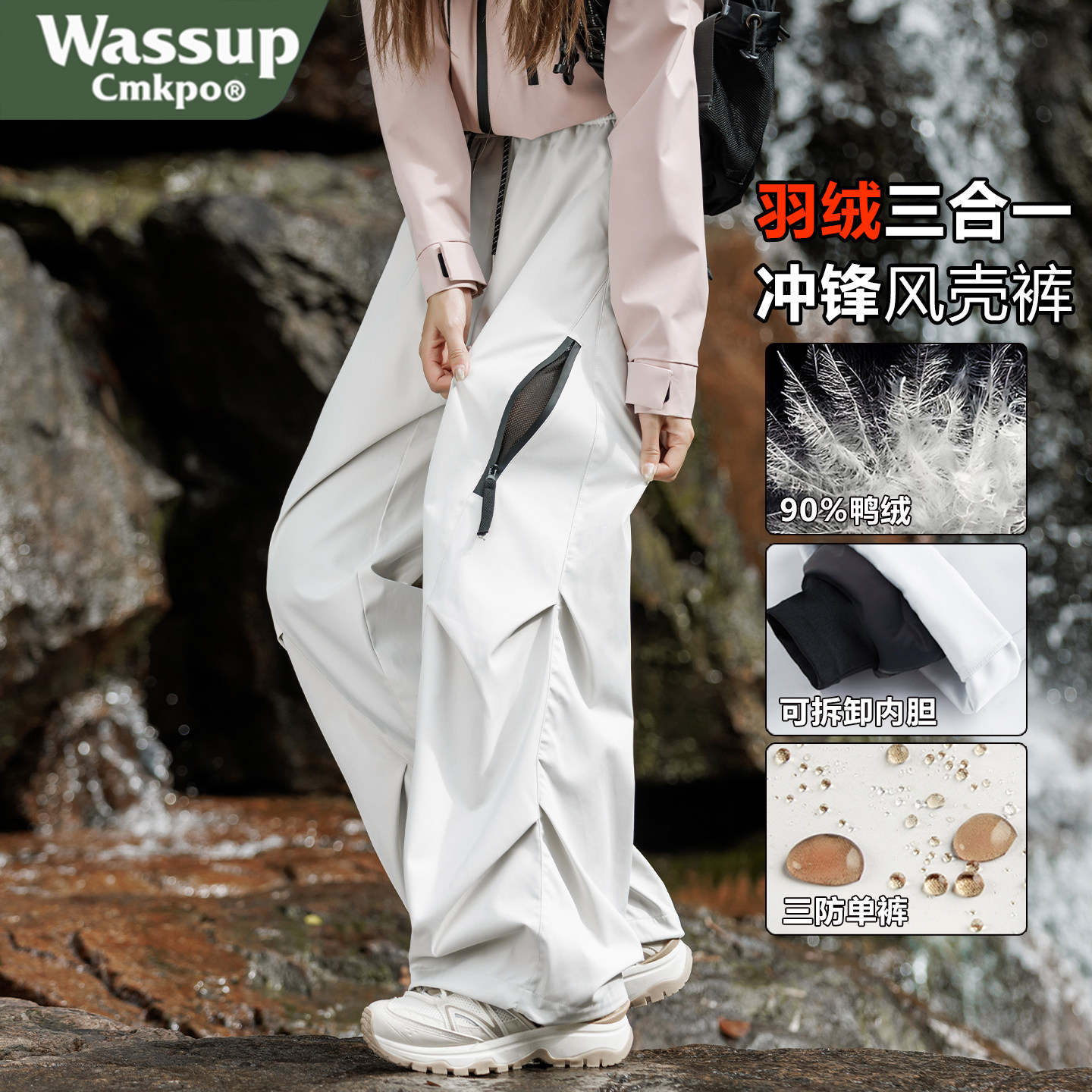 WASSUP CMKPO down three-in-one assault pants women's winter new Harbin snow town cold-proof ski pants for men