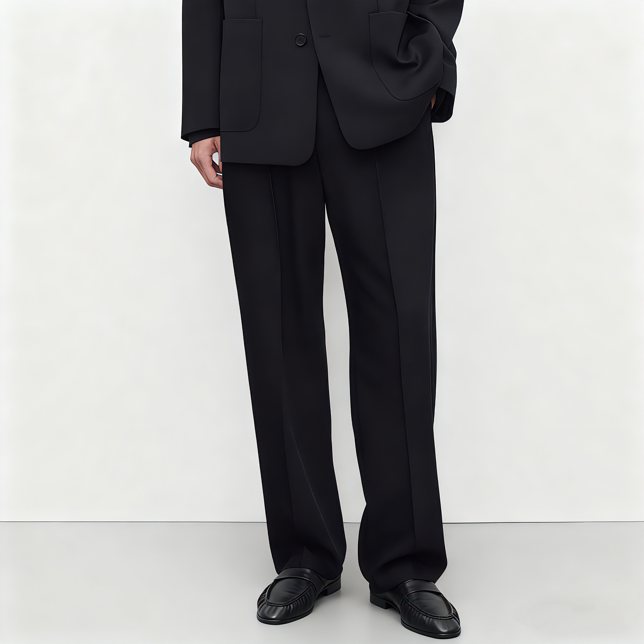 Three-dimensional pleated silhouette suit pants, men's American high-end, lazy style, loose casual drape, floor-length wide-leg trousers