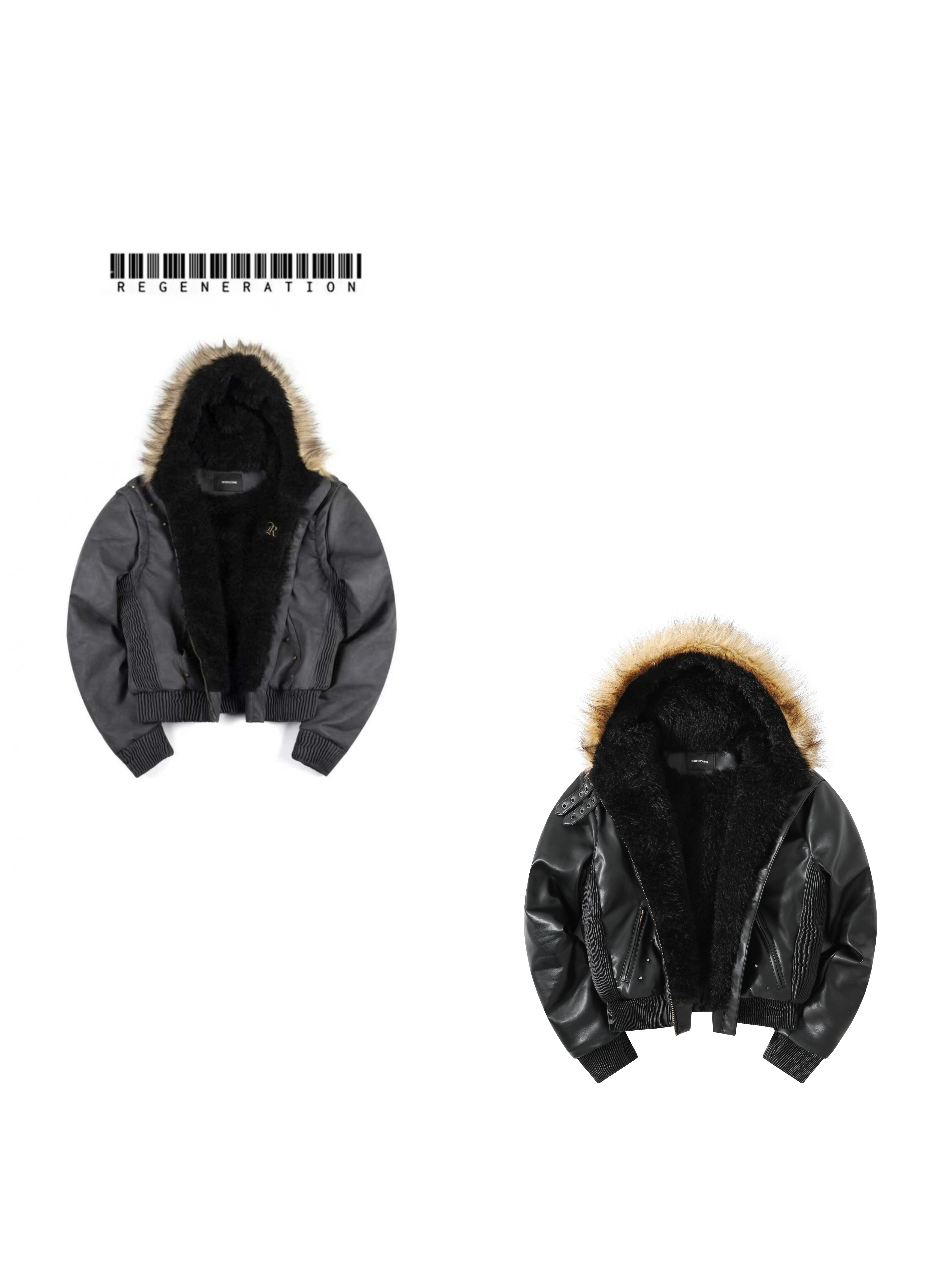 RGZ 25Fw "SIAU" Black Crow wears "Locomotive Seat Crow" cotton jacket with one fur on both sides