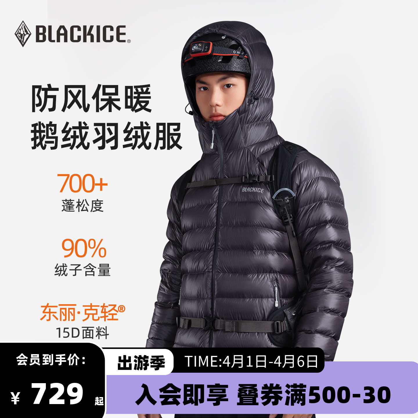 Black ice new outdoor Tianquan rib liner hooded lightweight 700 fluffy goose down jacket men's 8518