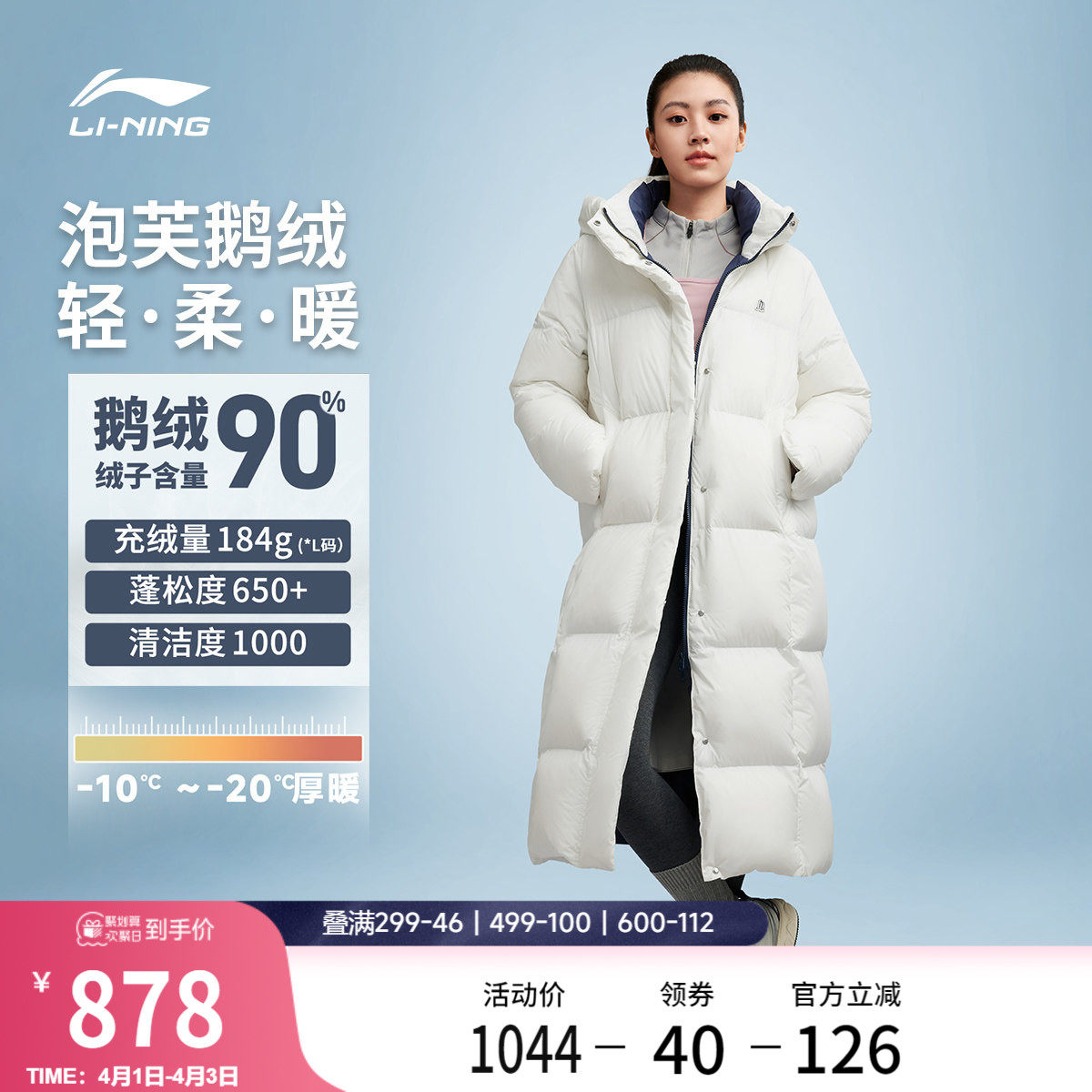 Li Ning long down jacket men's winter official new water-repellent jacket men's hooded top duck down sportswear
