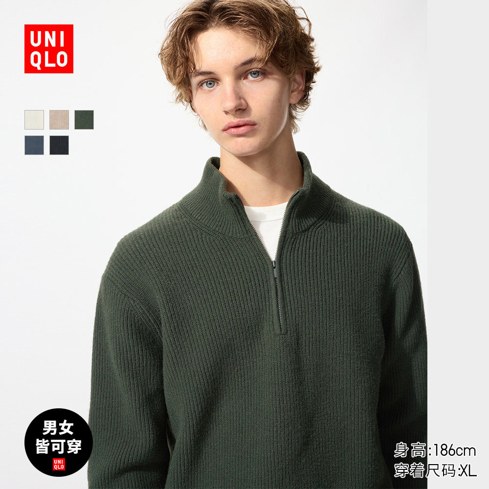 Uniqlo men's and women's souffle yarn souffle half-zip knitwear sweater sweater sweater new 478546