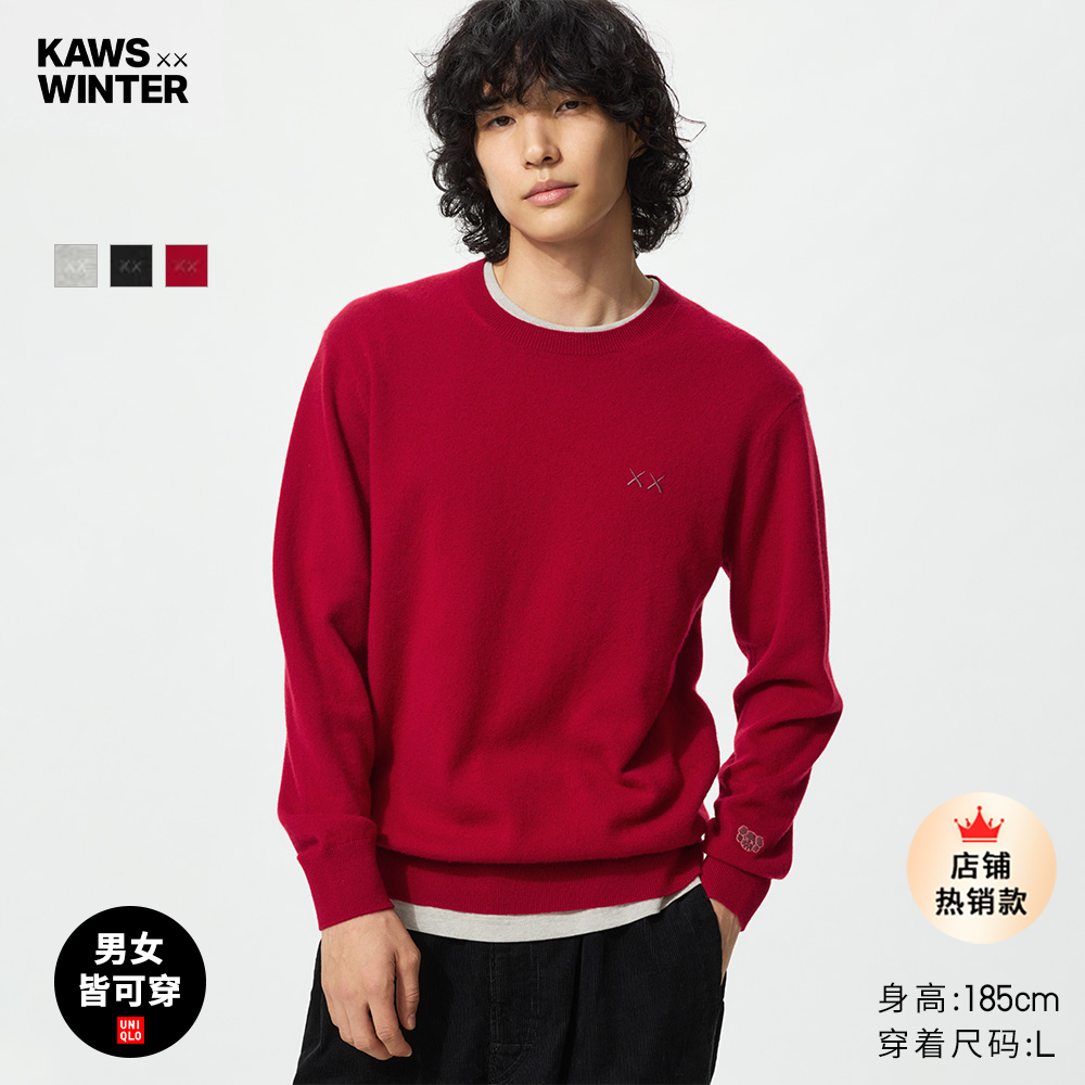 Uniqlo Men's Women's KAWS Cashmere Crew Neck Knitwear Long Sleeve Sweater Sweater 25 Fall/Winter New 485272