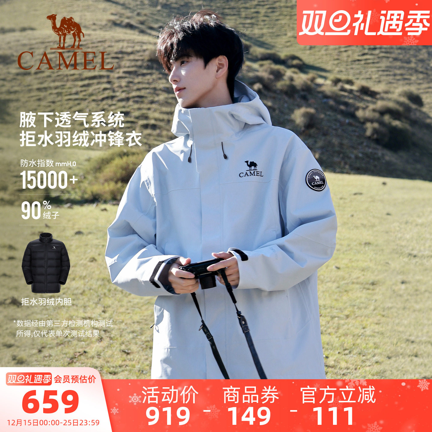 Camel outdoor jacket women's 25 years three-in-one goose down liner three-proof warm down mountaineering jacket men