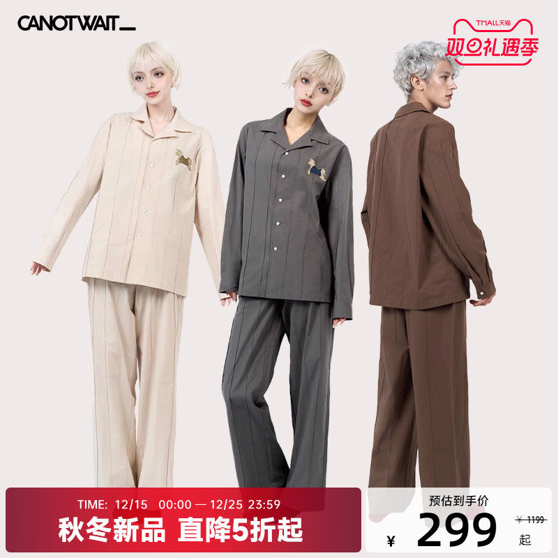 【William Chan】CANOTWAIT pony three-dimensional standard pleated shirt loungewear set couple autumn pajamas