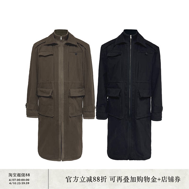 JCAESAR TRENCH COAT multi-pocket threaded trench coat with shoulder plates slightly loose