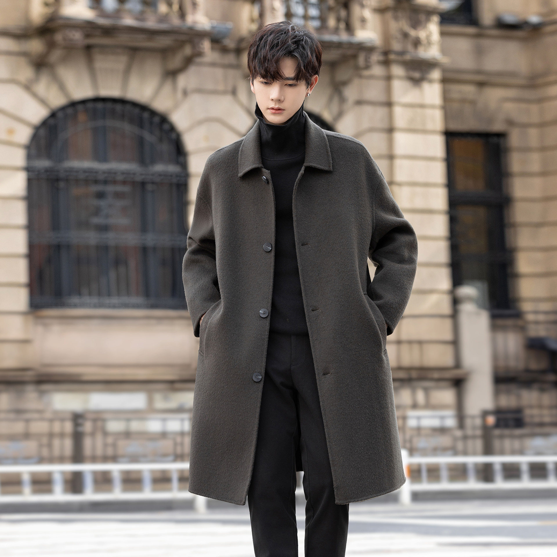 Winter warm wool wool coat men's mid-length double-sided fleece thickened men's trench coat high-end casual woolen coat