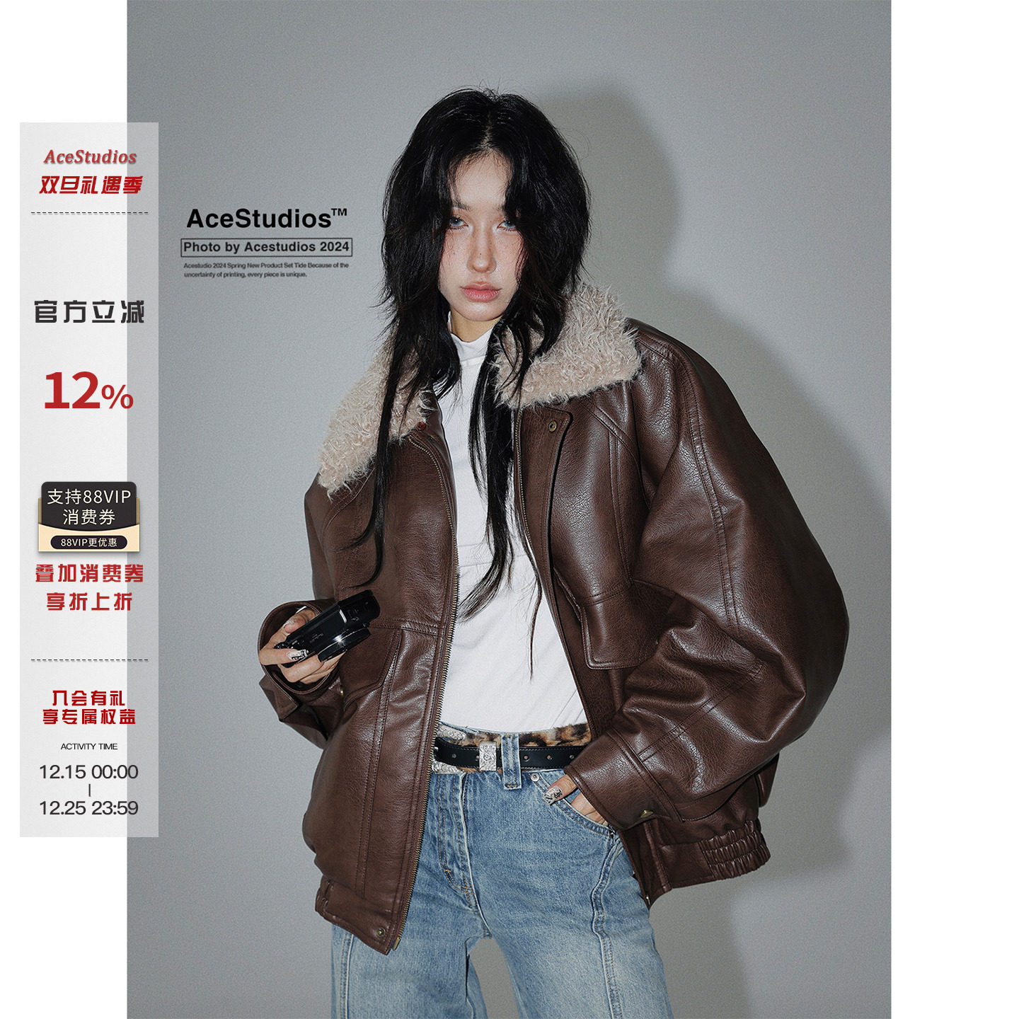 Acestudios American Vintage Maillard Style Luxury Motorcycle Wool Collar Jacket Jacket Jacket Women