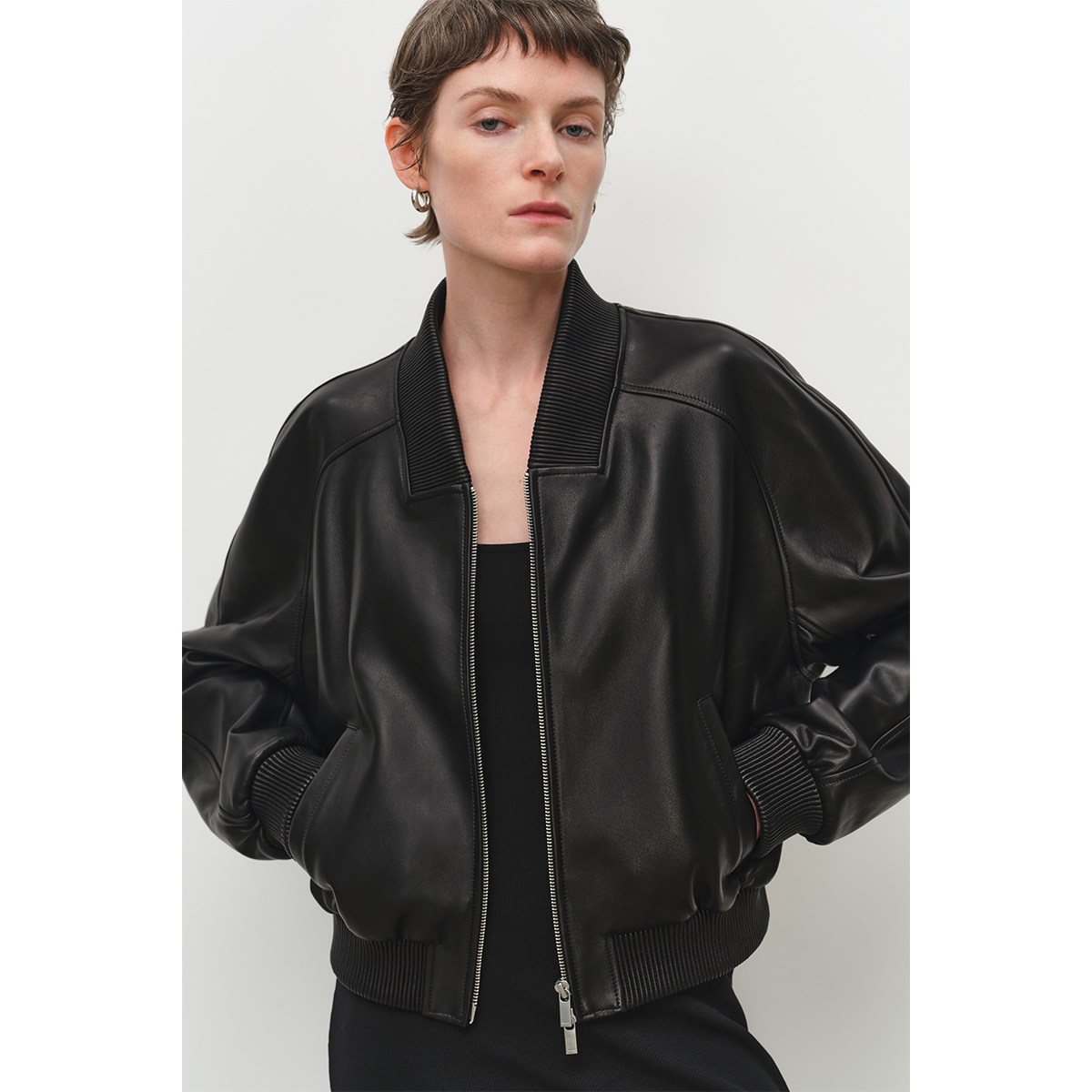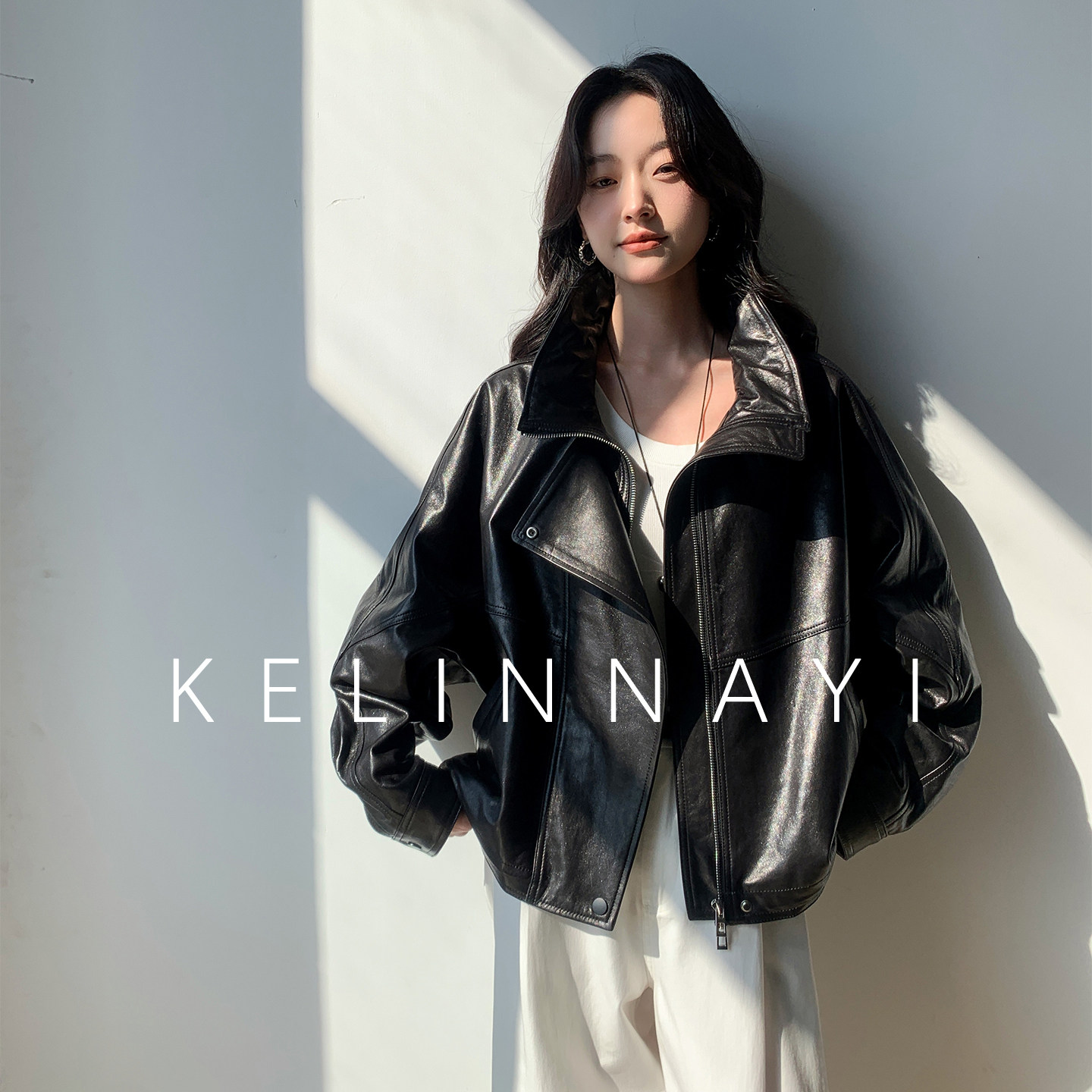 LACUNA Da Tingting [Jeju Island] Fashionable vegetable-tanned sheepskin loose leather thin autumn long-sleeved jacket for women