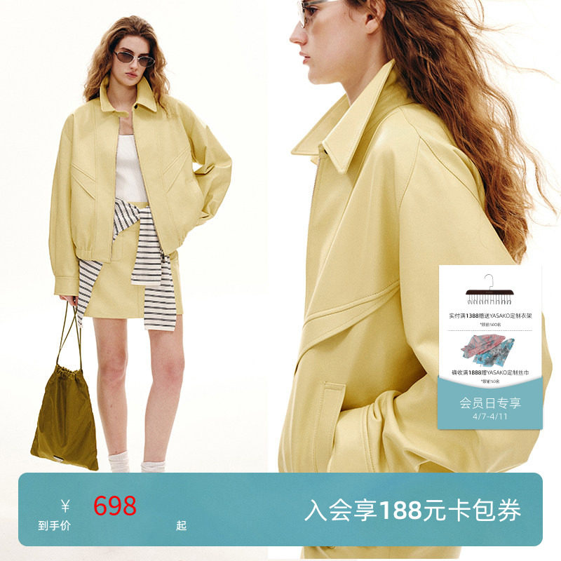 [Shen Yue's same leather jacket] Qiushui Yiren retro locomotive leather jacket women's spring and summer new leather jacket