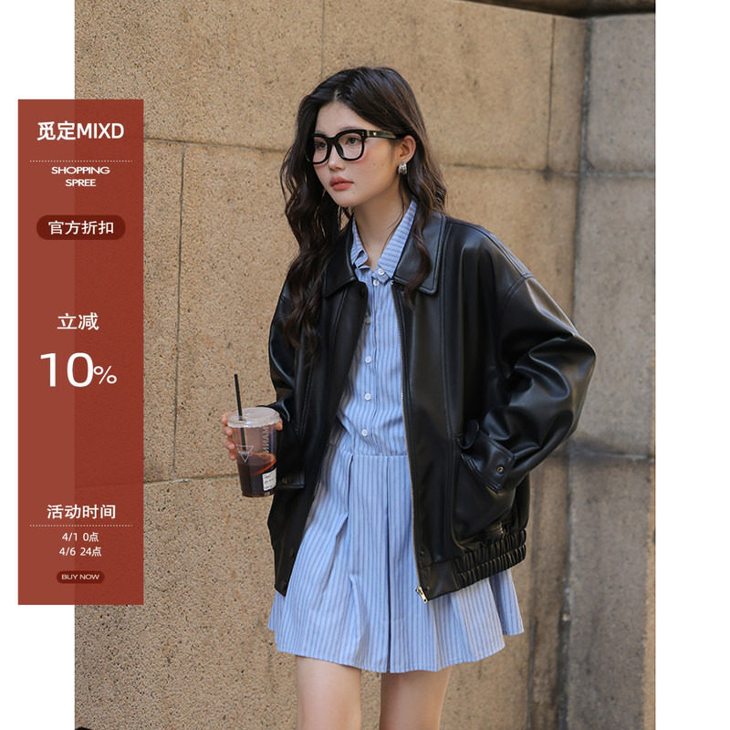 Leather jacket female cool sassy style little man 2026 super hot jacket leather jacket spring This year's fashion leather jacket is high-end