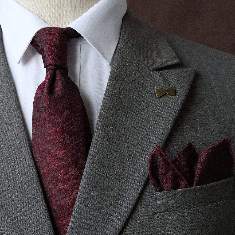 Burgundy rose mulberry silk silk tie men's formal business groom wedding professional burgundy zip tie