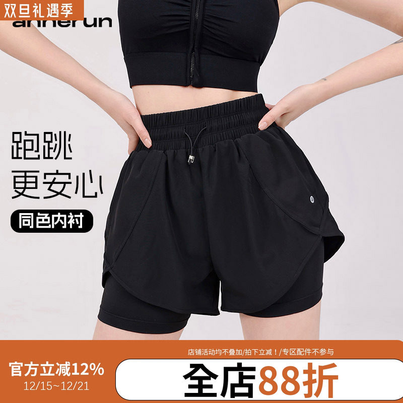 Internet celebrity sports shorts, women's loose flesh-covering high-waisted, anti-light, slimming, running gym pants, fake two pieces of yoga hot pants