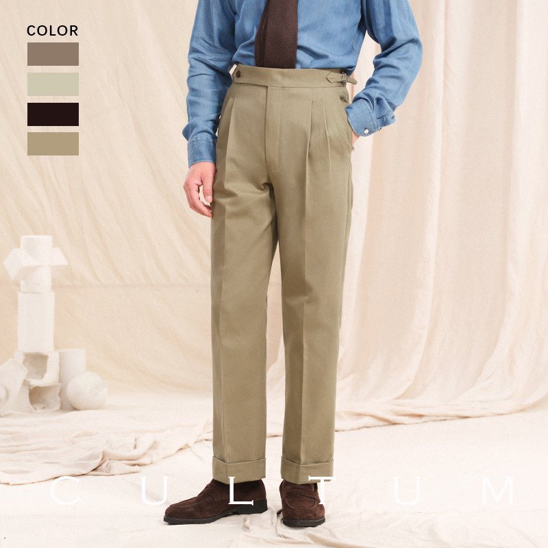[Gentleman's Armor Knight Twill] CULTUM Vintage Neapolitan Cotton Abrasion Resistant Double Pleated Suit Pants for Men