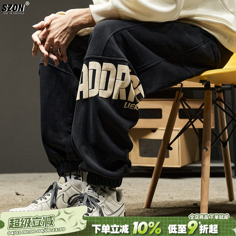 Trendy brand sweatpants men's spring and autumn new American hip-hop design heavy pants leggings boys' sports overalls