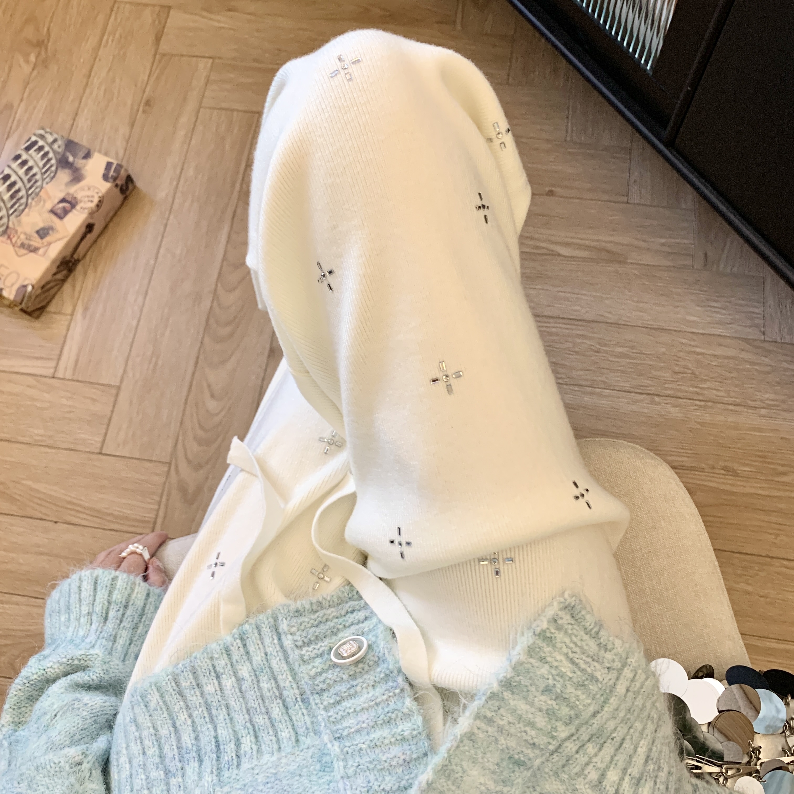 Jade Closet direct store recommendation ~ high-end heavy industry hot drill high-waisted thickened knitted wide-leg pants women's autumn and winter