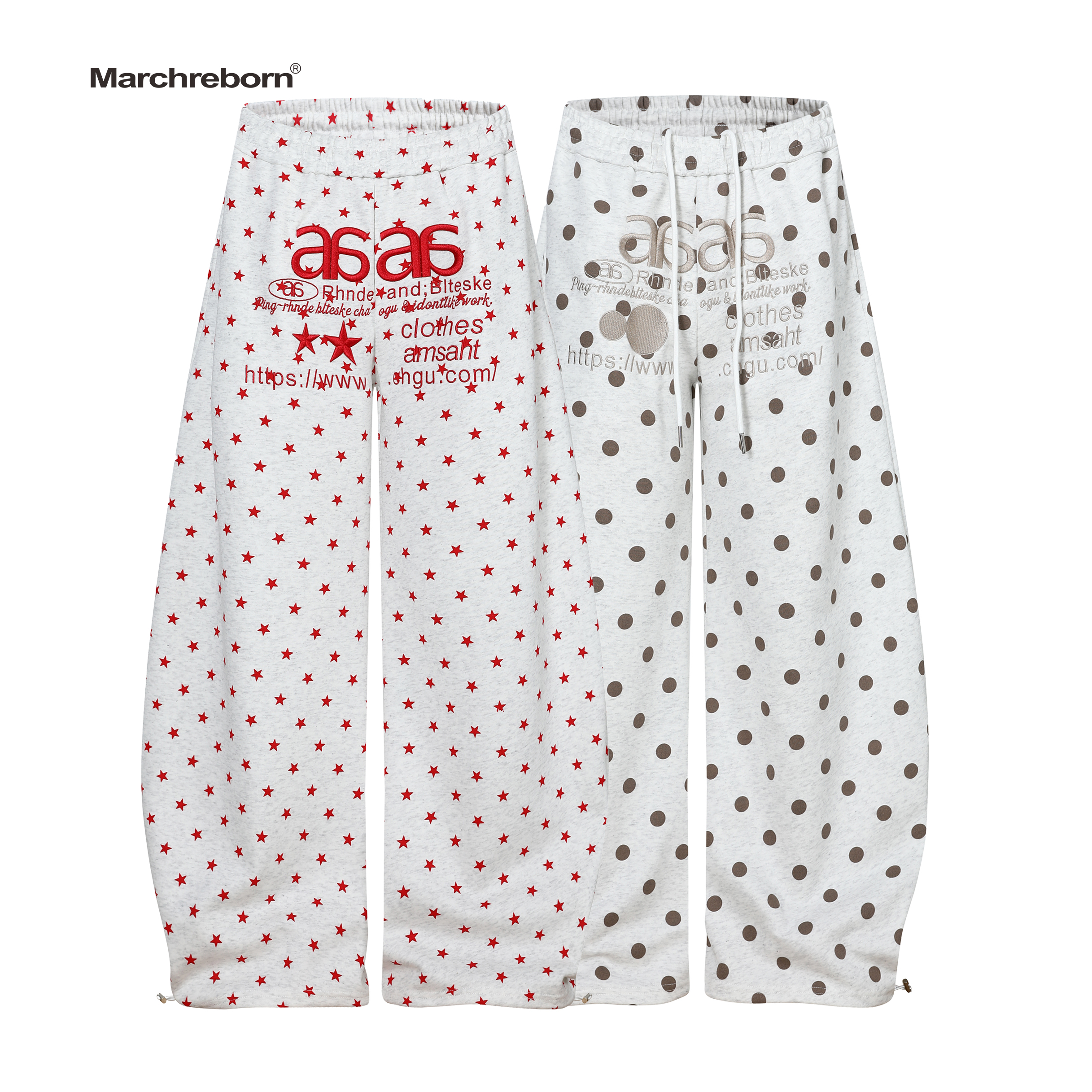 MARCH American polka dot star embroidered letter loose wide-leg women's hiphop slacks Versatile plush sweatpants
