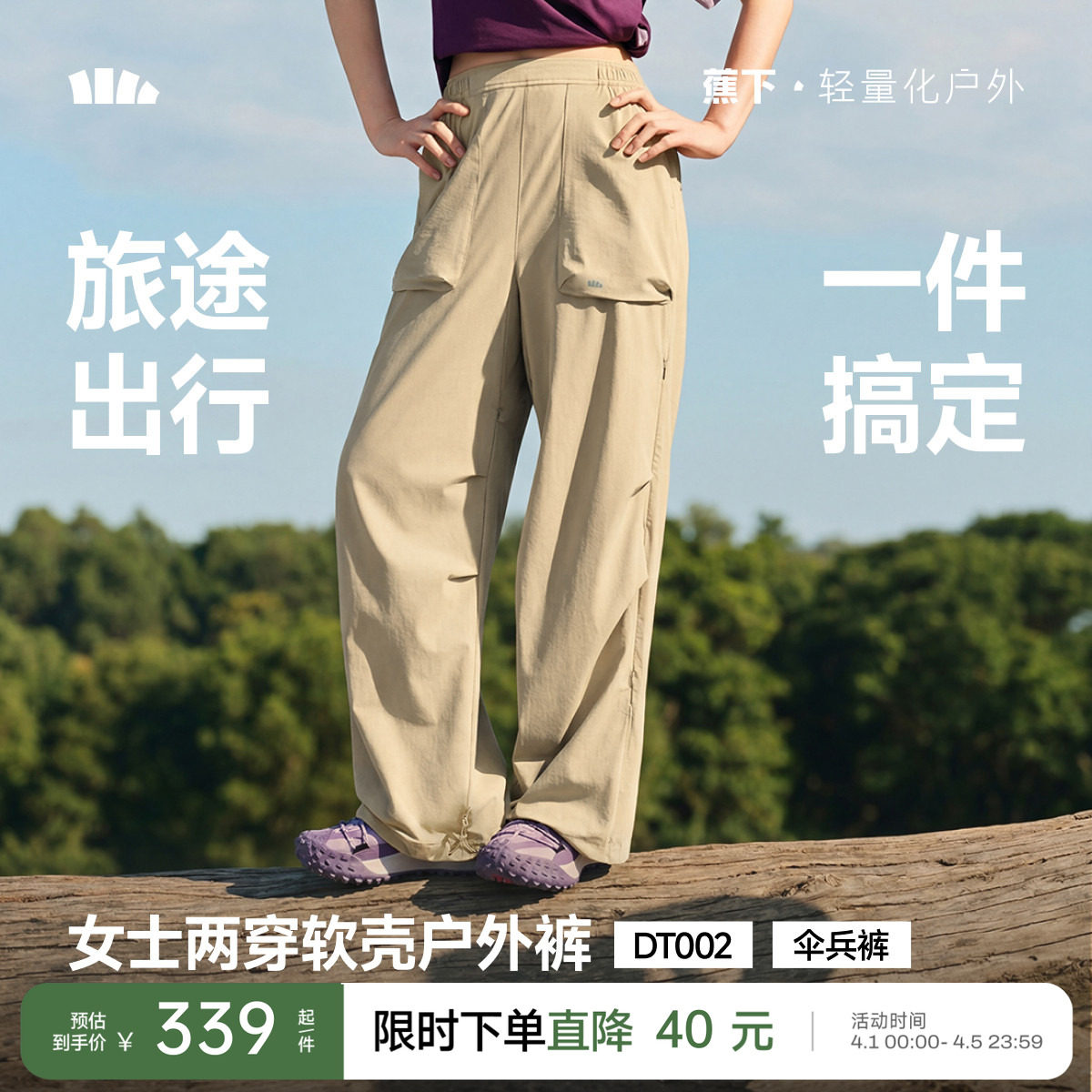 Jiaoxia two jacket pants, women's new spring adjustable length outdoor hiking wear-resistant breathable sunscreen paratrooper pants