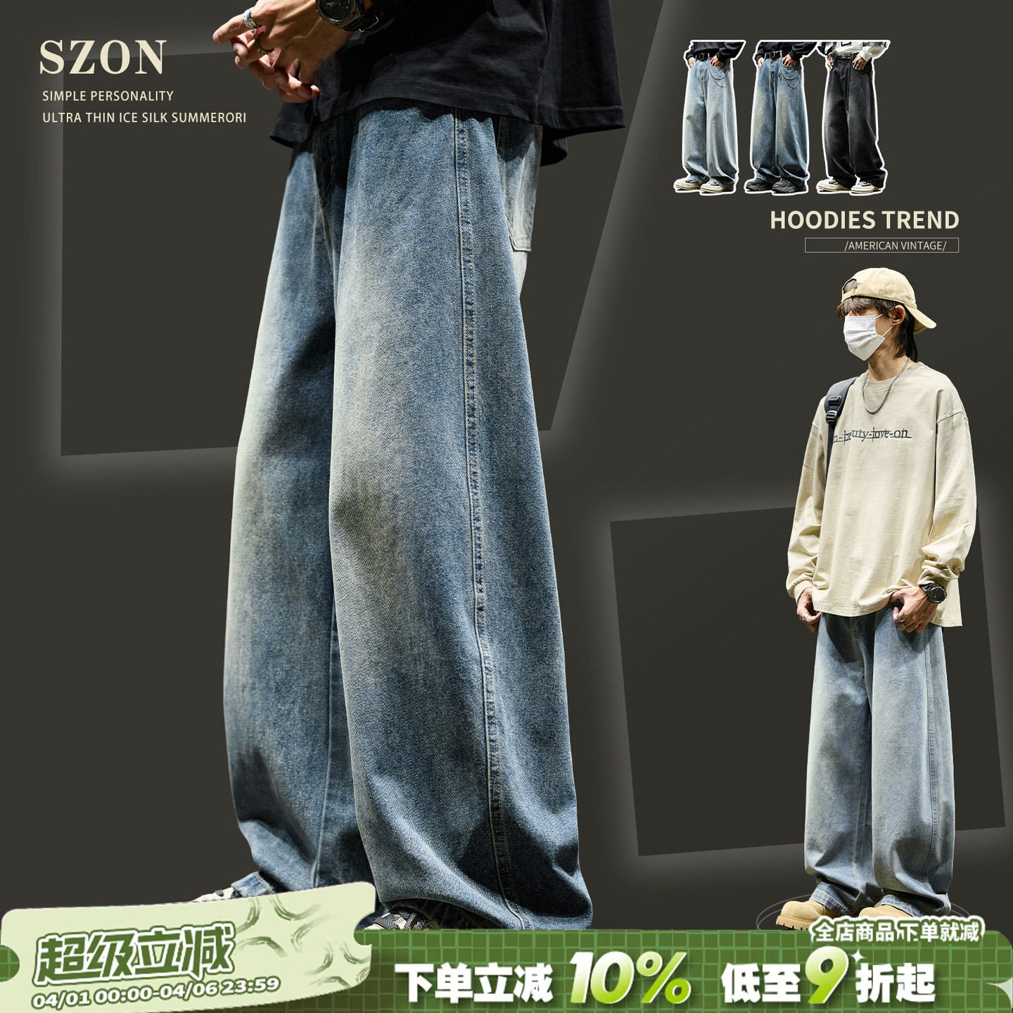 JeansMen's Summer American Straight Pants Casual Men's Pants Scimitar Pants 2026 New Loose Pants