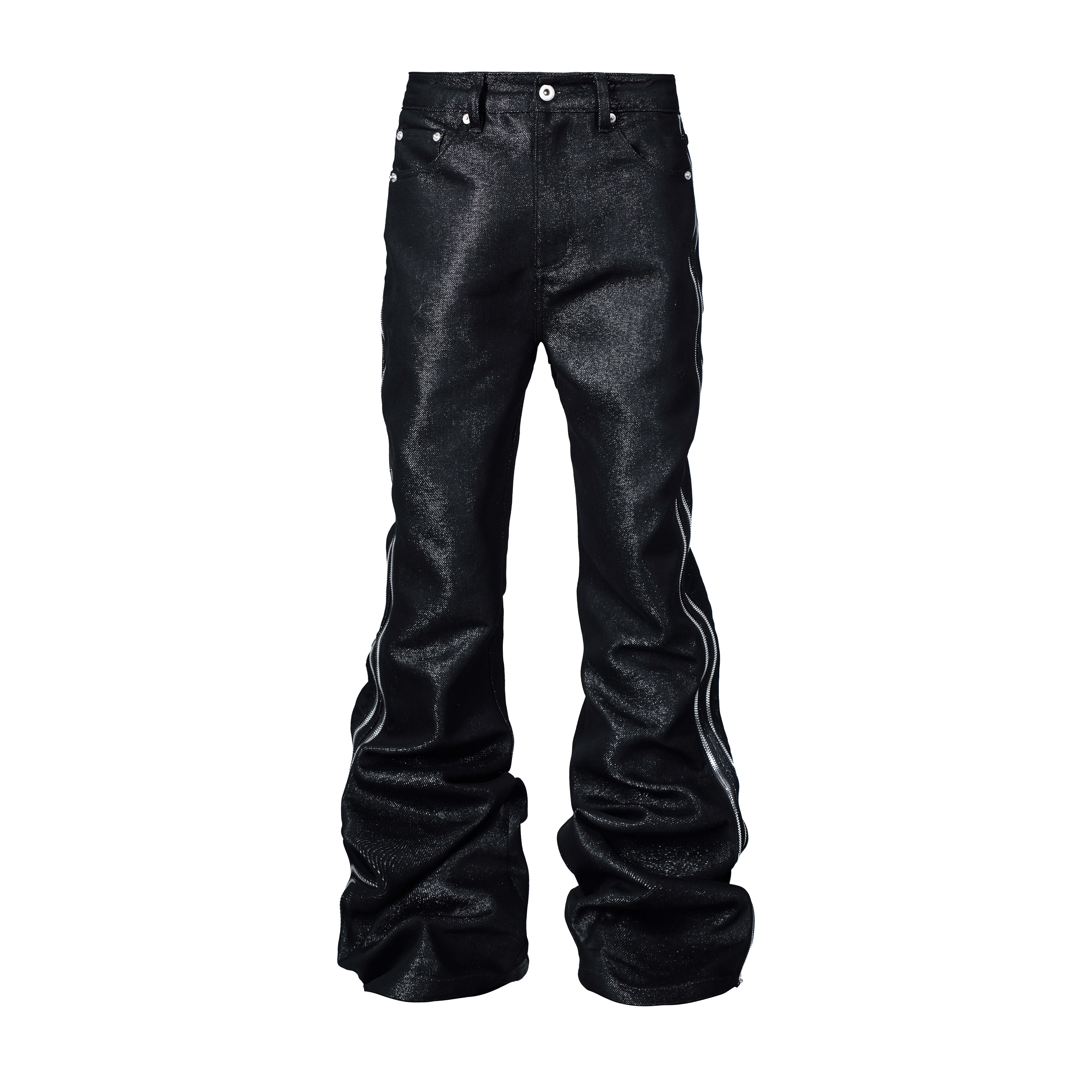 *RYE CHASIN silver thread metal bolan bootcut double zipper slightly cut mopping floor stacked primary color jeans