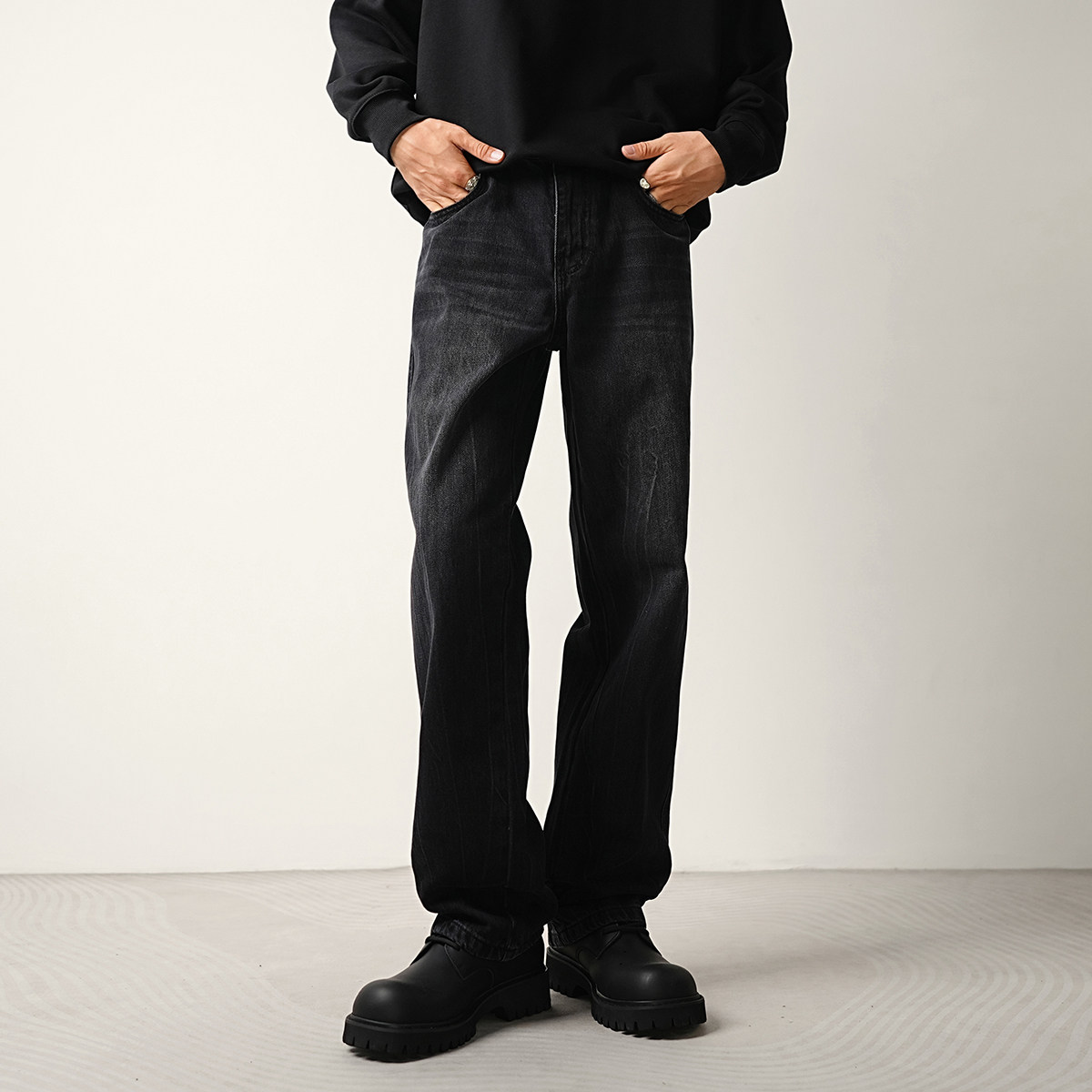 THUMPUP Niche high-end floor-length jeans men's American vintage straight loose wide-leg pants