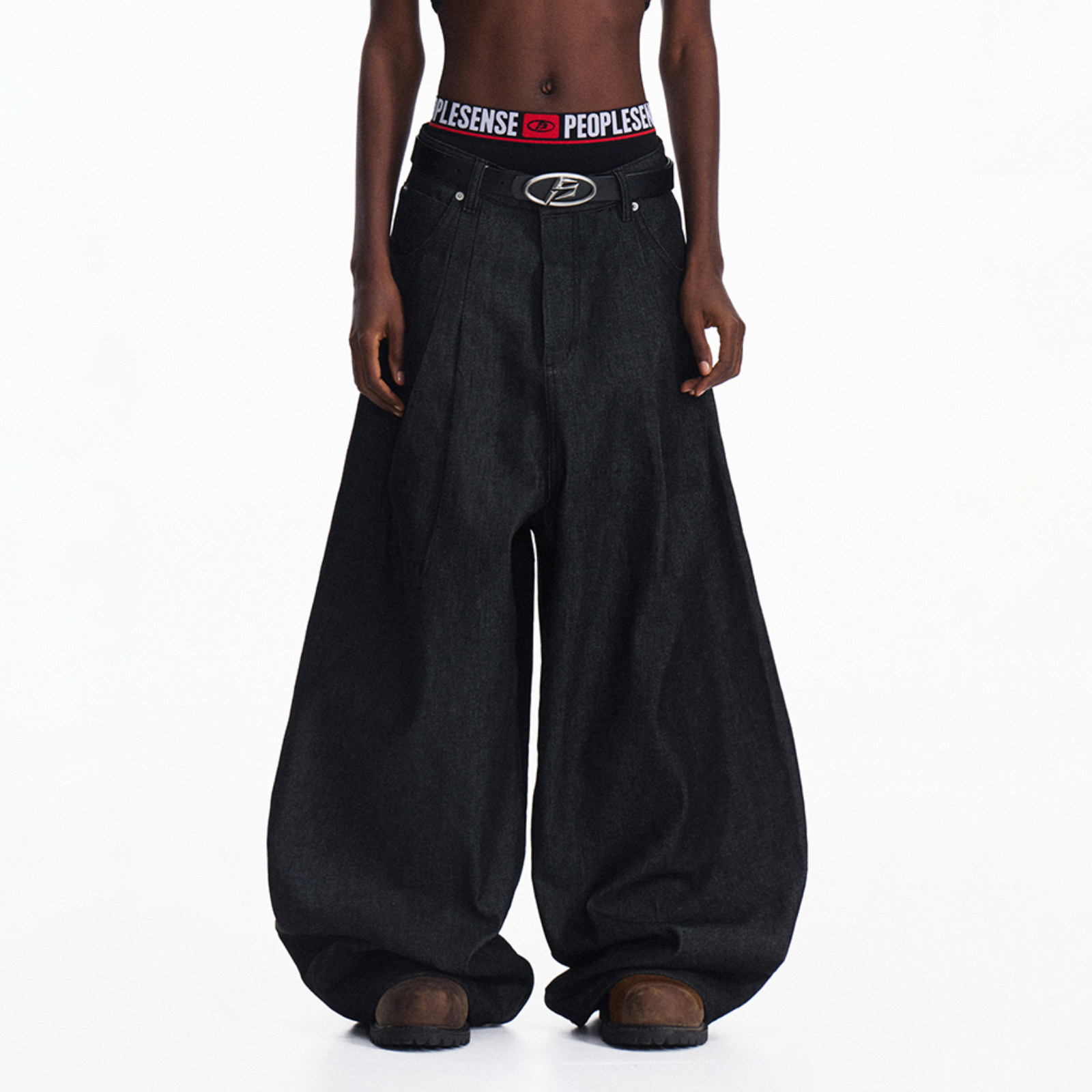 PEOPLESENSE Kanglong Genbourg Vintage Black Pleated Jeans Baggy Casual Scimitar Silhouette Pants