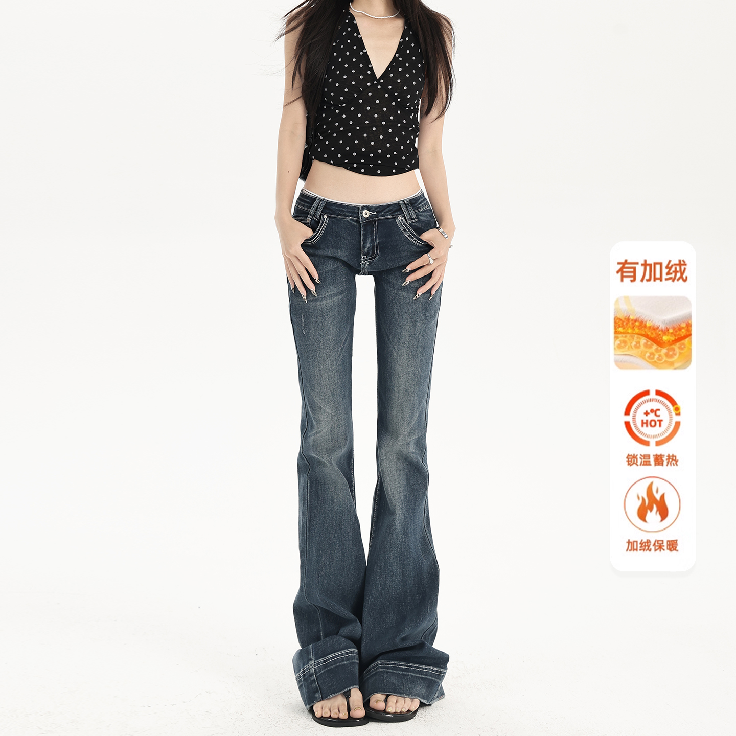 CBC Retro Blue Narrow Wide-Leg Jeans Women's 2025 New Autumn and Winter Fleece Pants Small Straight Pants