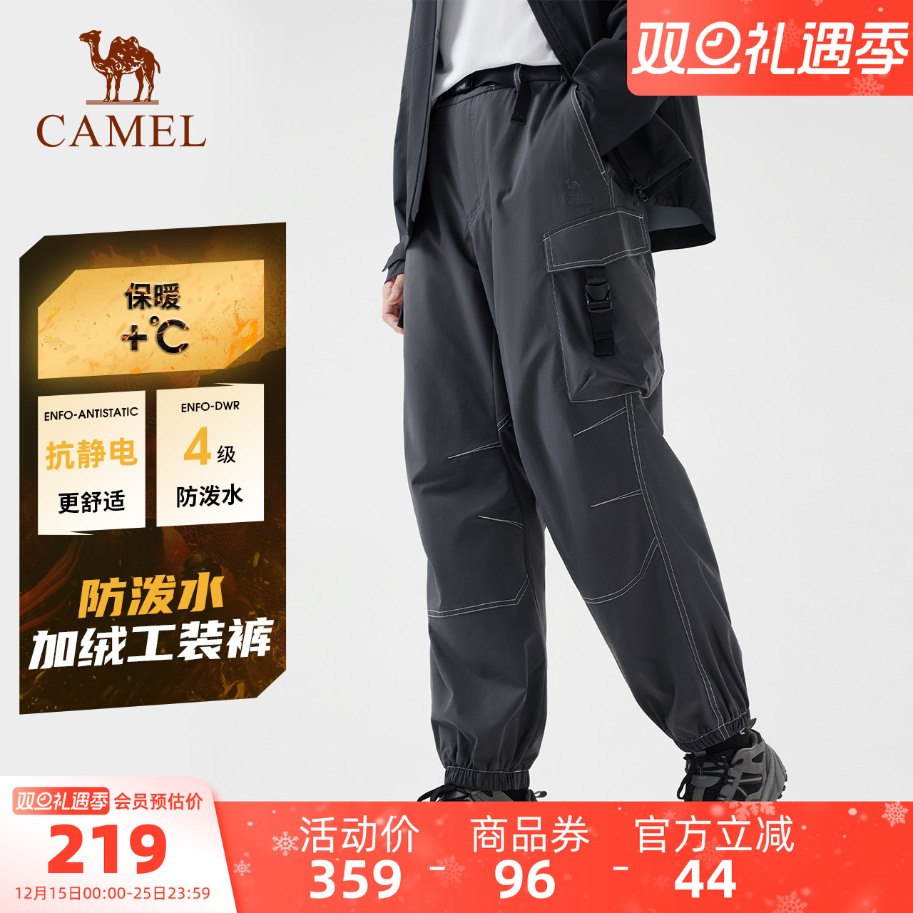 Camel outdoor slacks for men Autumn and winter windproof and waterproof straight trousers Outdoor cargo pants with thin fleece legs for men