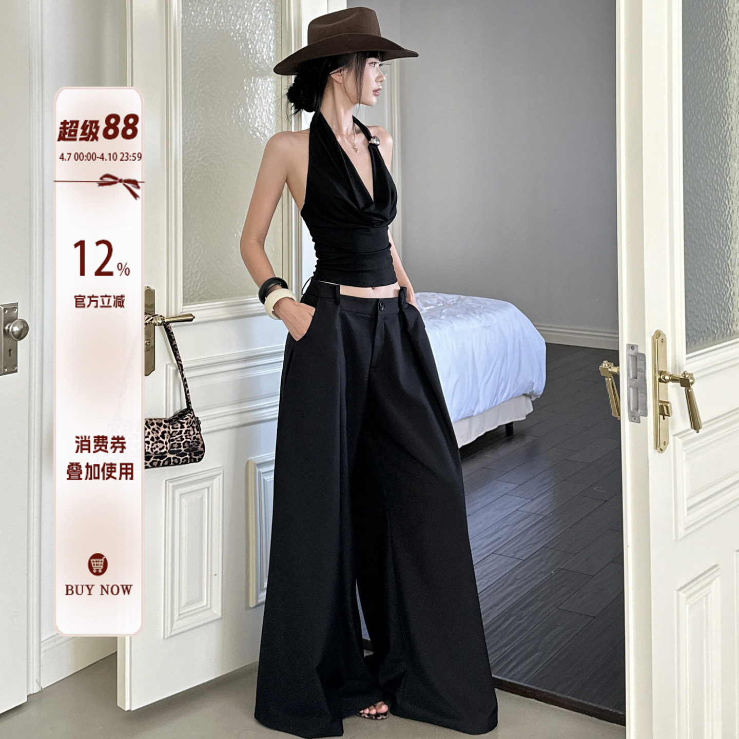 KEARA three-dimensional split pleated wide-leg trousers high-waisted strap drape loose floor-length scimitar slacks for women
