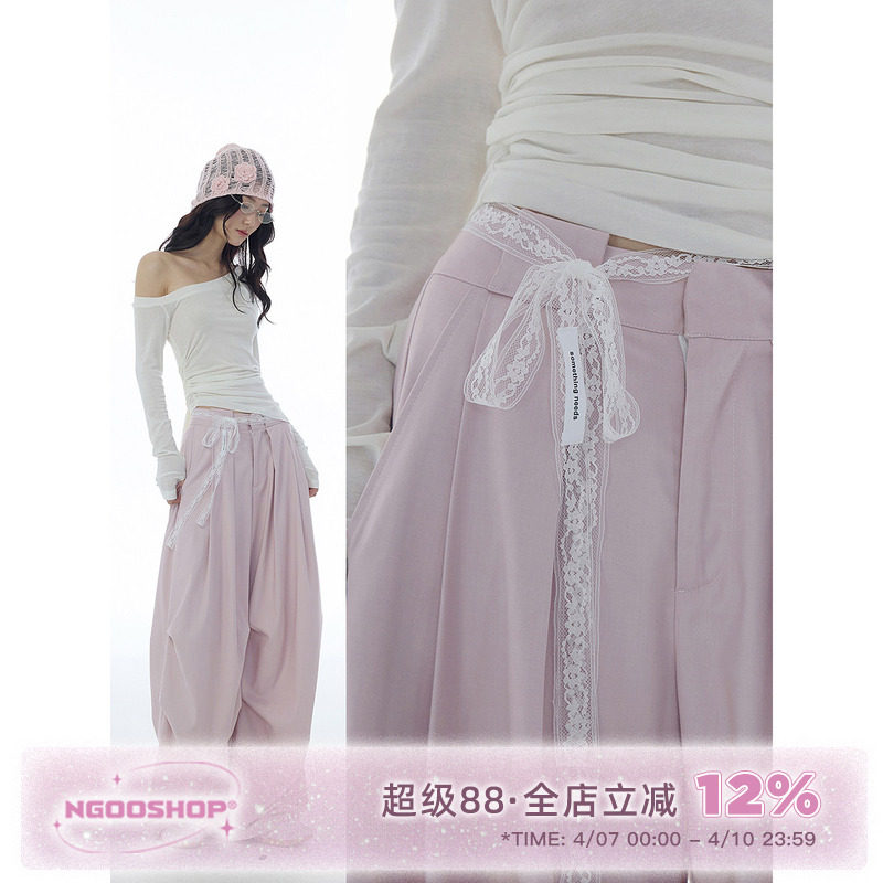 NGOO niche pink suit pants women's spring high-waisted slimming drape straight wide-leg floor-length jazz dance trousers