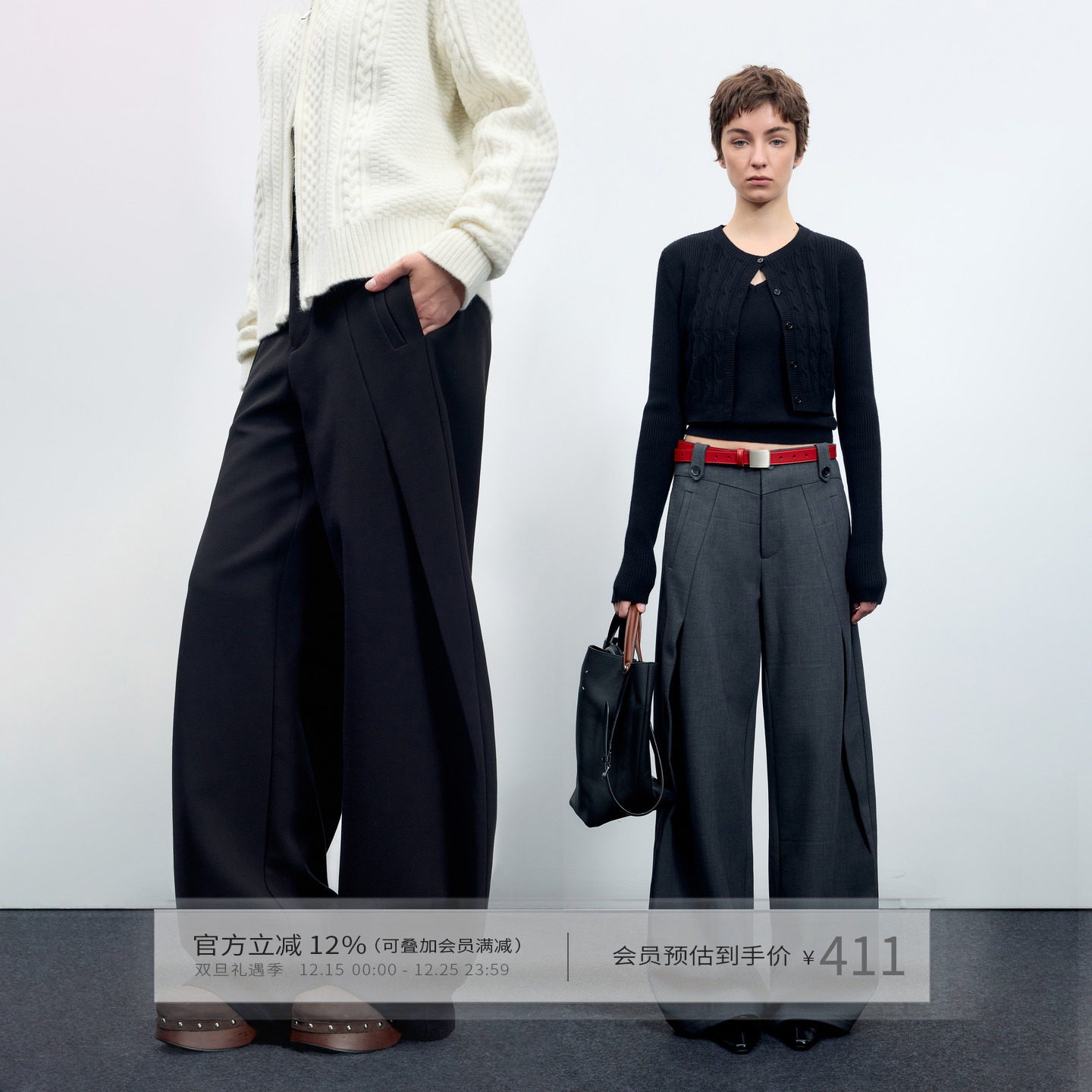 Escape Chigang West wool blend silhouette gray micro scimitar suit pants women's autumn and winter wide-leg casual pants