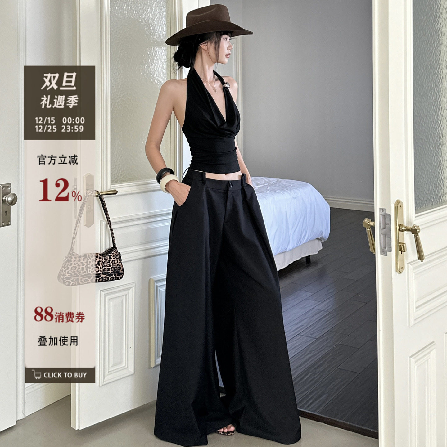 (Black version) BUZHOU 24AW "Minimalist Queen" black elastic low-rise straight-leg stacked long trousers