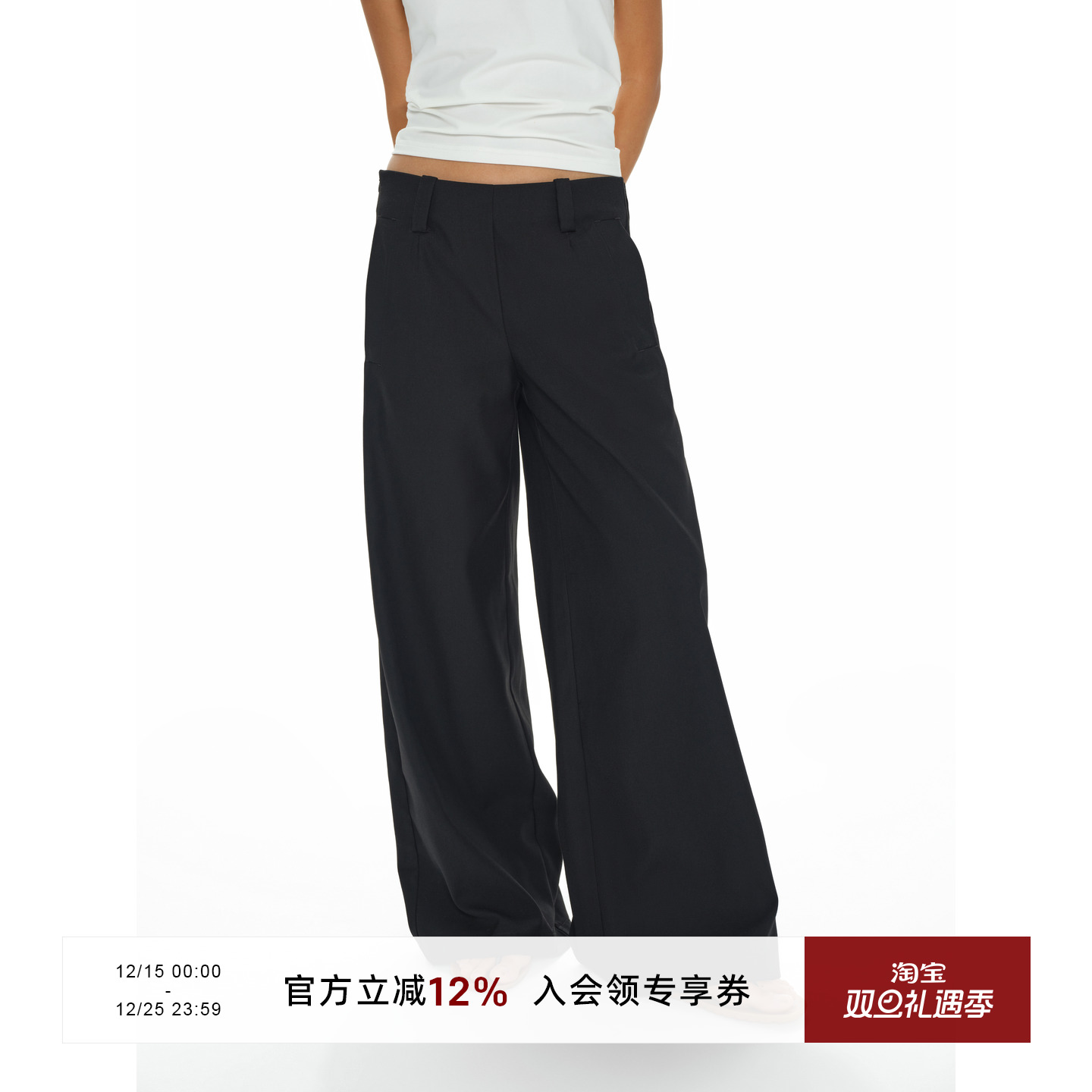 KVKV black low-rise slim V-shaped trousers American hot girl retro casual slimming wide-leg spread pants girl