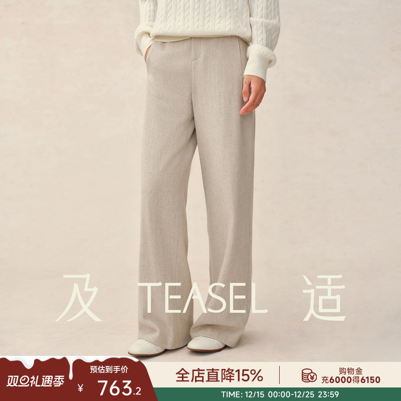 TEASEL "Cool Winter" cashmere wool warm leg cover crotch knitted simple micro-elastic straight-leg trousers