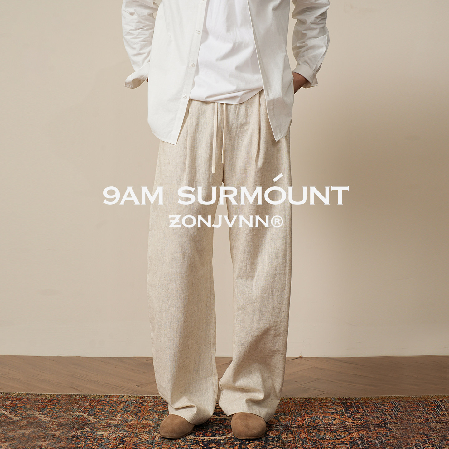 ZONJVNN old money style linen trousers scimitar pants Xinjiang cotton blend casual versatile boys high-end sense pants
