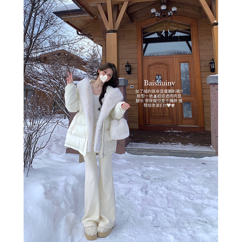 White Water Girl [Bi into !! Slimming God Pants 2.0] Bootcut slacks women's autumn and winter thickened warm white pants