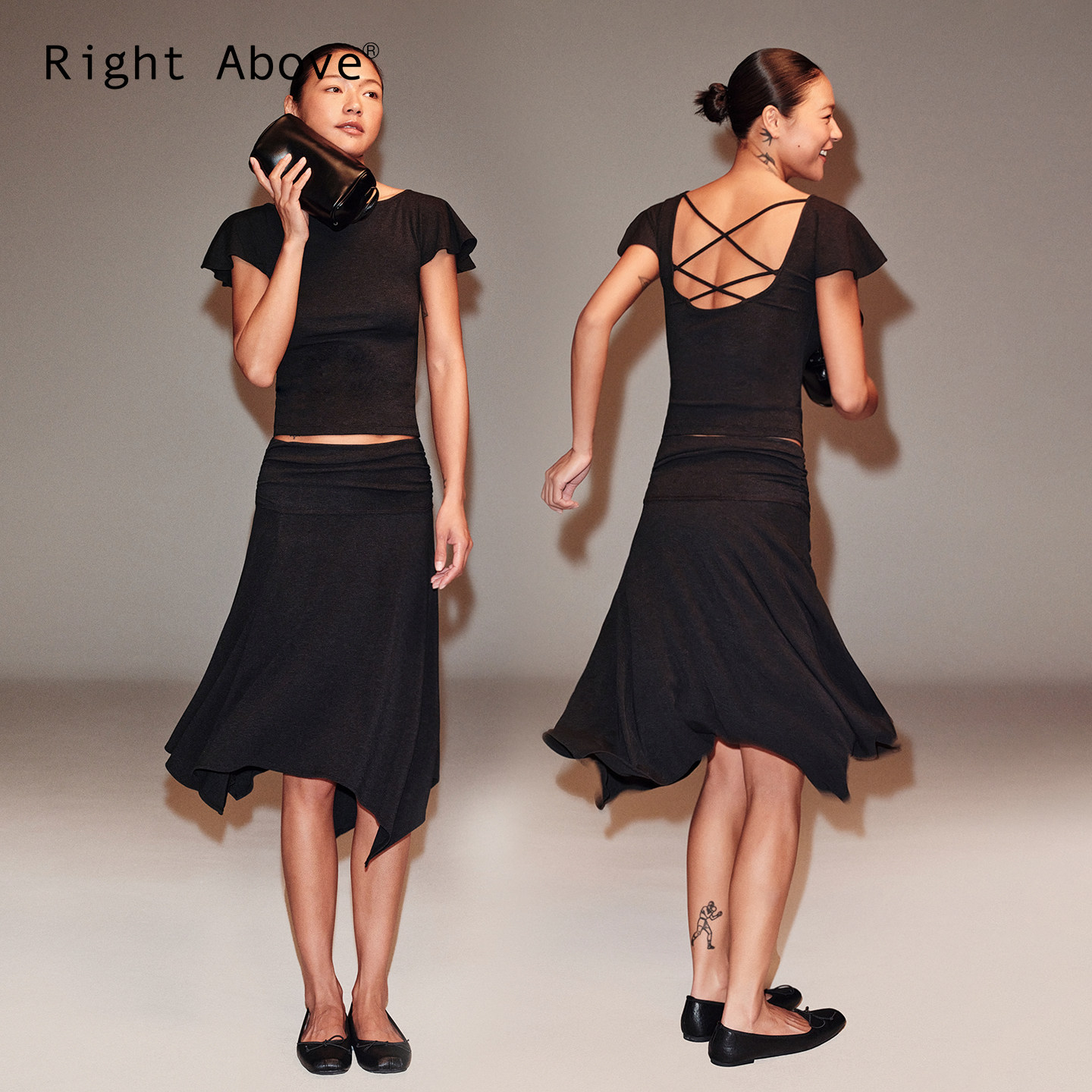 Right Above Tencel Wool Low Waist Pleated Irregular Hem Skirt Summer Skirt Midi Length