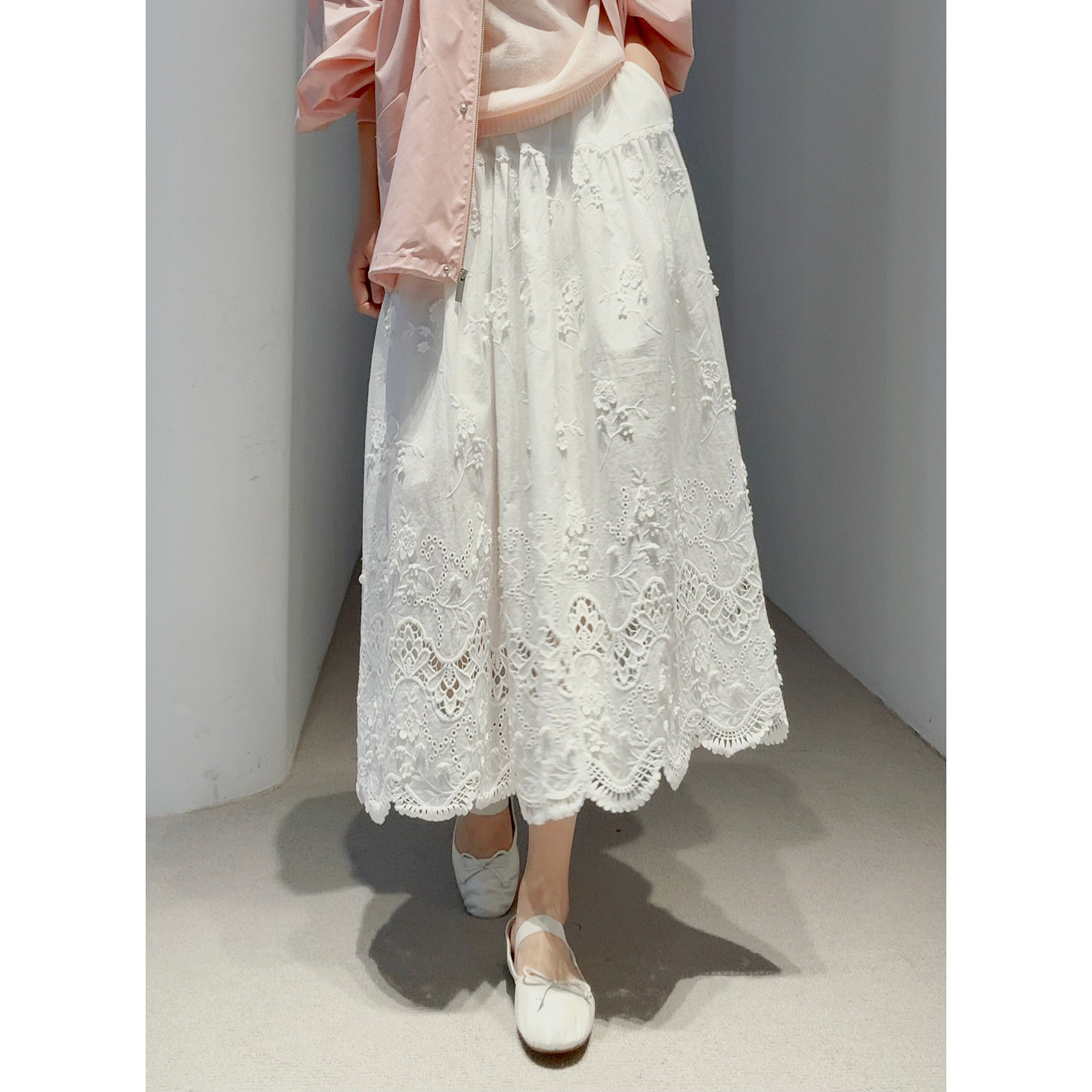 26 Spring Fairy Skirt [Big Consumables! 100 High Count Cotton_Thin_Skinny/Hollow Three-Dimensional Embroidery] Elastic waist skirt
