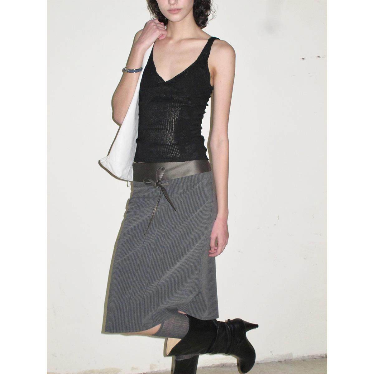 Highriver 25ss Grey Striped Leather Waisttop Skirt - Grey