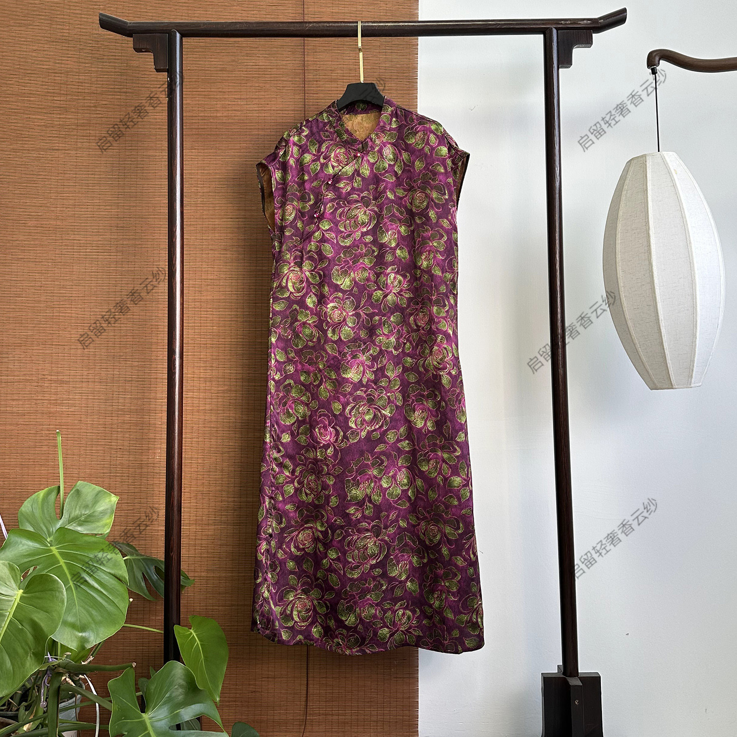 Silk fragrant cloud yarn old Song brocade five-blessing buckle dress 11-20 purple gourd