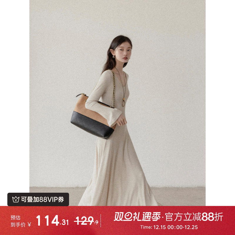 EIA Yiyao [Bad Woman Has Everything] Long-sleeved dress, women's winter grooming temperament, shoulder contrasting long skirt