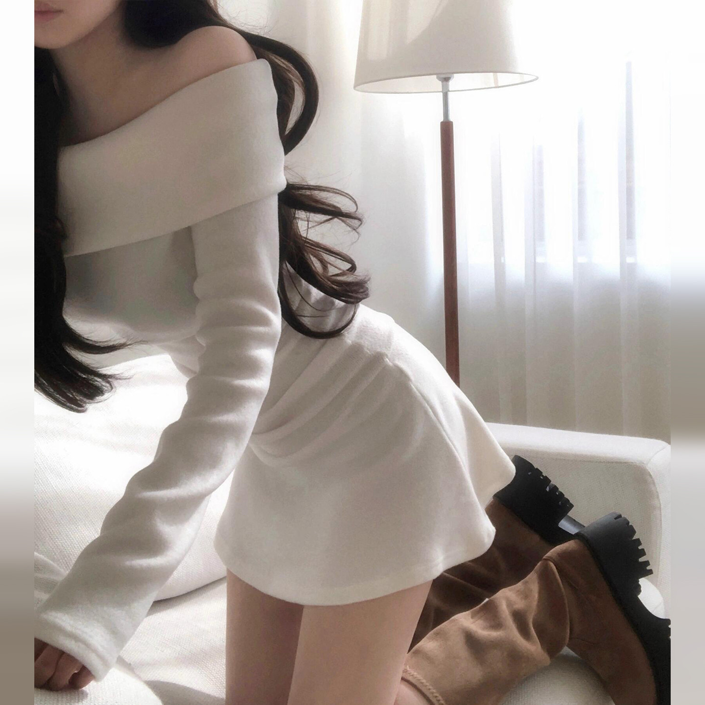 Christmas and New Year outfit white one-shoulder dress women's autumn and winter 2025 new giant hip-hugging skirt