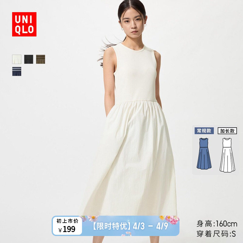Regular Uniqlo women's dress with a waist dress/sleeveless skirt is versatile 26 spring/summer new 484887